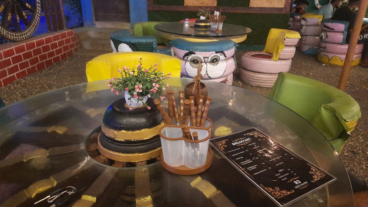As you step into Coco Heaven, the first thing that strikes you is its inviting countryside ambiance. The thoughtful design, featuring a thatched roof and quirky coconut-themed decor, sets a warm and engaging atmosphere. The owner’s attention to detail resonates throughout the space, from the handcrafted coconut shell utensils to the unique seating made from upcycled tyres, creating a truly eco-friendly environment.